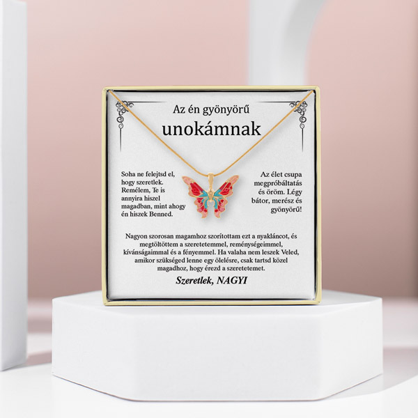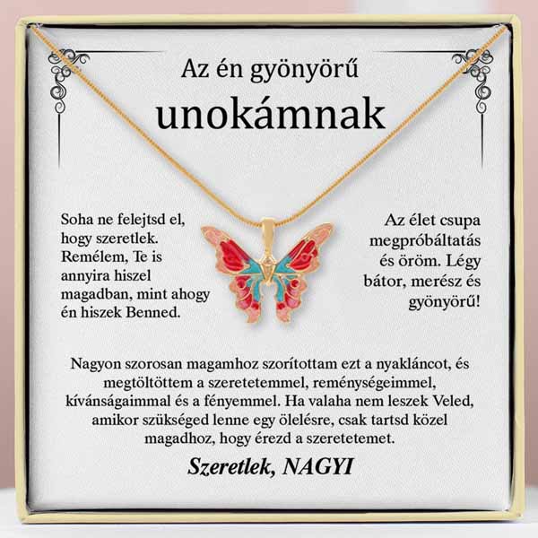 Egyedi design: Nyakláncunk színes pillangó alakú medállal büszkélkedhet, amely egyszerre stílusos és szép. Az olajcseppentéses eljárás vibráló színek spektrumával ruházza fel, így igazi műalkotássá válik. 🌈🖌️