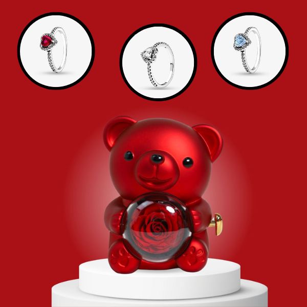 Ígéretgyűrű és pörgő ékszerdoboz mackó alakban | HEARTISO_ROSBEAR
