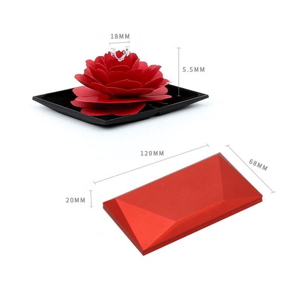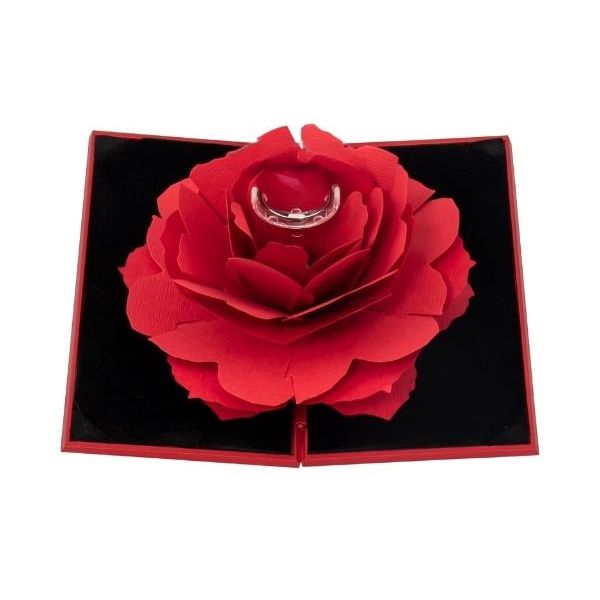 Kiváló minőségű anyagokból készült, a karcsú kagyló tartós műanyag belsővel és puha flanellel rendelkezik a gyűrű védelmére, míg a külső rózsa prémium minőségű papírból készült, hogy valósághű és időtlen legyen. Kompakt és diszkrét kialakítása lehetővé teszi, hogy könnyen elférjen a kabátzsebben, így tökéletes társ lehet váratlan felajánlásokhoz, évfordulókhoz vagy különleges ajándékokhoz.