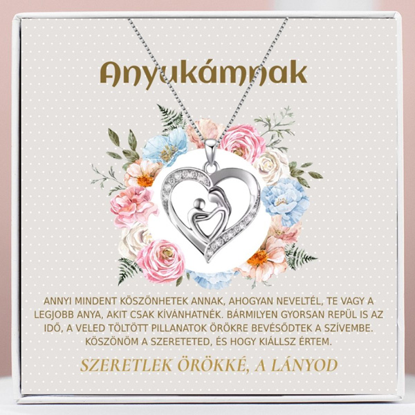 Ünnepelje a szeretetet és a kapcsolatot a MOMHEART nyaklánccal! 💖 Ez az elegáns szív alakú medál 925 hipoallergén sterling ezüstből készült, így mattulásálló és nikkelmentes, tökéletes a mindennapi viselethez. A karcsú dizájn egyszerű, mégis kifinomult, így ideális anyák napi ajándék vagy különleges évfordulós ajándék. Akár egy összejövetelre, randevú estére vagy esküvőre, ez a nyaklánc tökéletes kiegészítője bármilyen öltözéknek. 🌟