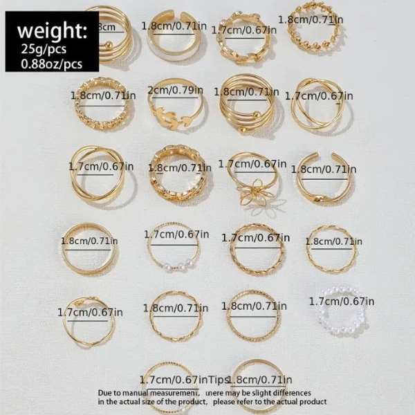 Ez az arany árnyalatban kapható gyűrűkészlet tökéletes kiegészítője gyűjteményének, amellyel könnyen felújíthatja egyedi stílusát. 💍✨
