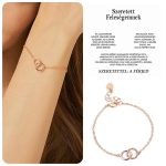 A karkötő egyedi tervezésű, összefonódó körökkel büszkélkedhet, amelyek a végtelenséget és két ember közötti kapcsolatot szimbolizálják. Egyszerű, mégis kifinomult kialakítása alkalmassá teszi mindennapi viseletre vagy különleges alkalmakra.