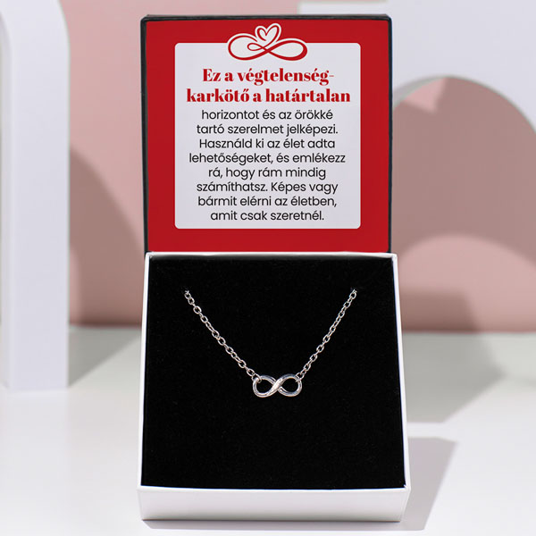 Ez a végtelenség-bokalánc a határtalan horizontot és az örökké tartó szerelmet jelképezi. Használd ki az élet adta lehetőségeket, és emlékezz rá, hogy rám mindig számíthatsz. Képes vagy bármit elérni az életben, amit csak szeretnél.